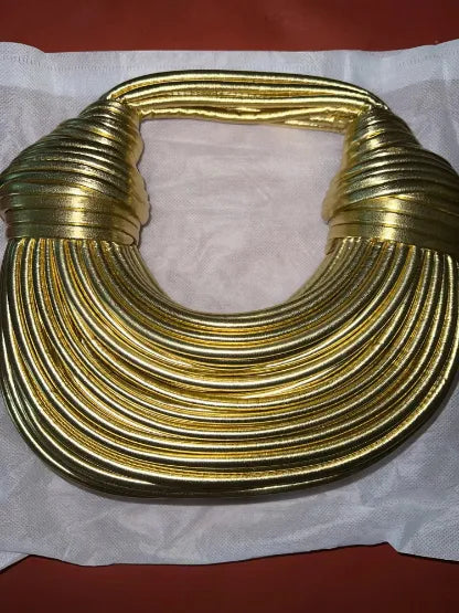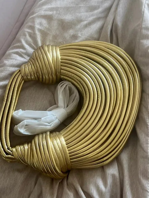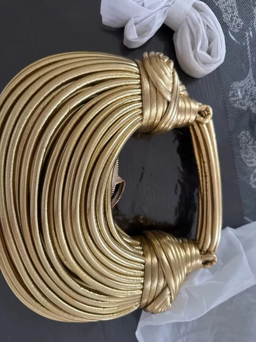 El clutch de cuerda dorada de lujo es exactamente lo que necesitaba para completar mi atuendo. Es elegante y muy estiloso.